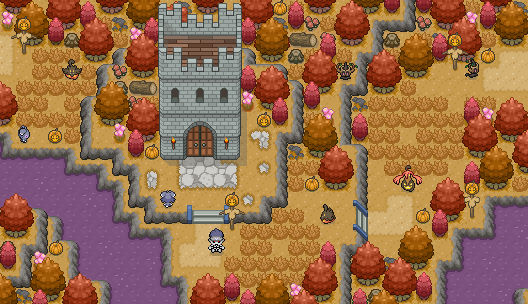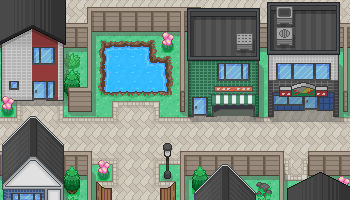 - ポケモン風の春夏秋冬マップチップと塔と転生広告の町