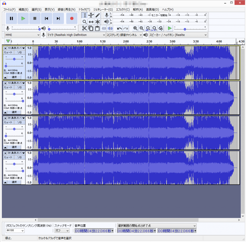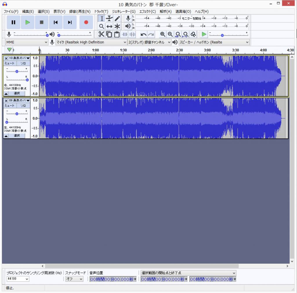 トラックを分離するとR音声とL音声のふたつに別れます。