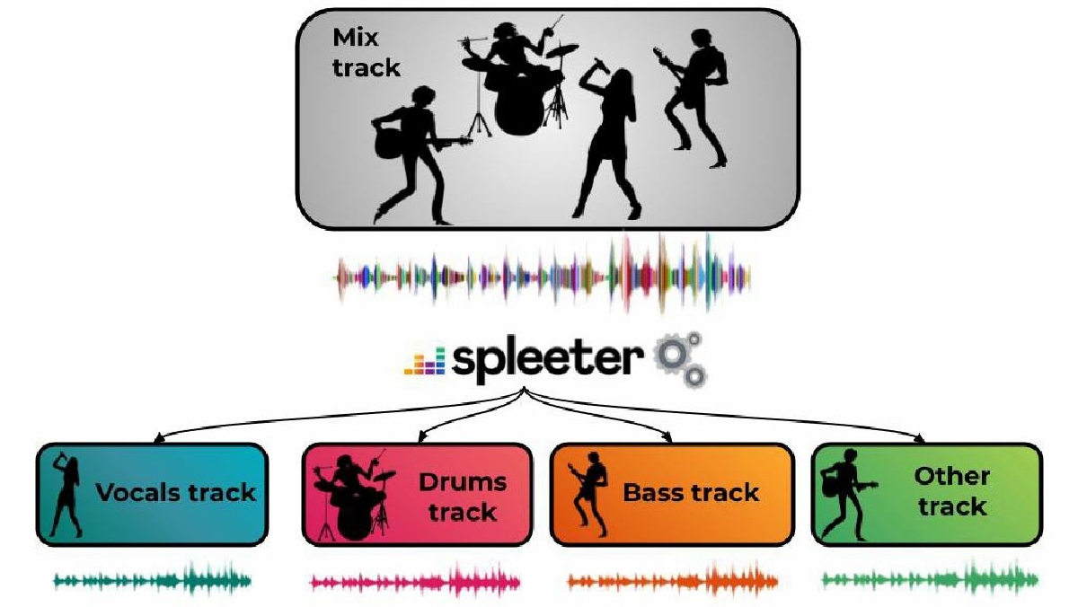 Spleeterは機械学習で、音声ファイルから下記のパートを抽出してくれる音声分離ライブラリです。