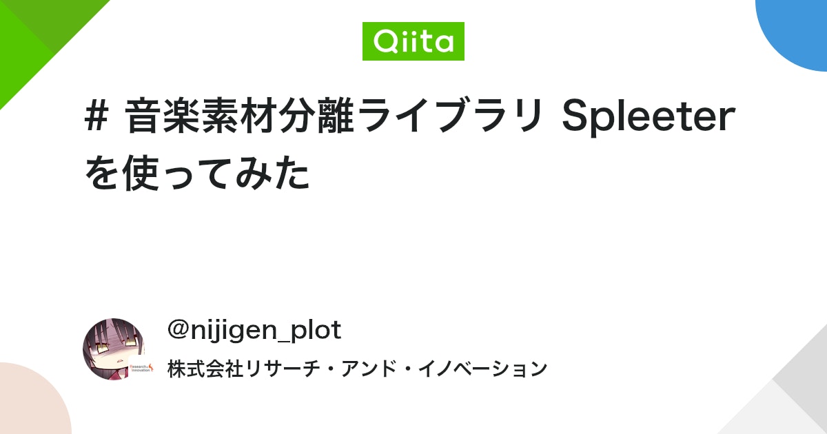 はじめに Deezer Spleeterなるボーカル抜き出しライブラリを試してみた。 音声分離というと、位相反転させて、ボーカルだけ抜き出すのが主流(ちょっと時代遅れかも)な気がしますがドラムやベースなど色々と抜き出せるのがSpleeter...