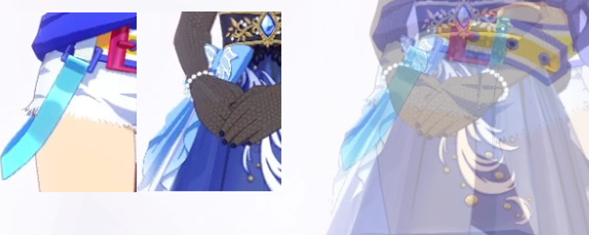 ドロワのダンスの際のダイイチルビーの青い衣装は、その見た目からファーストサフィーの再現とよく話されていました。