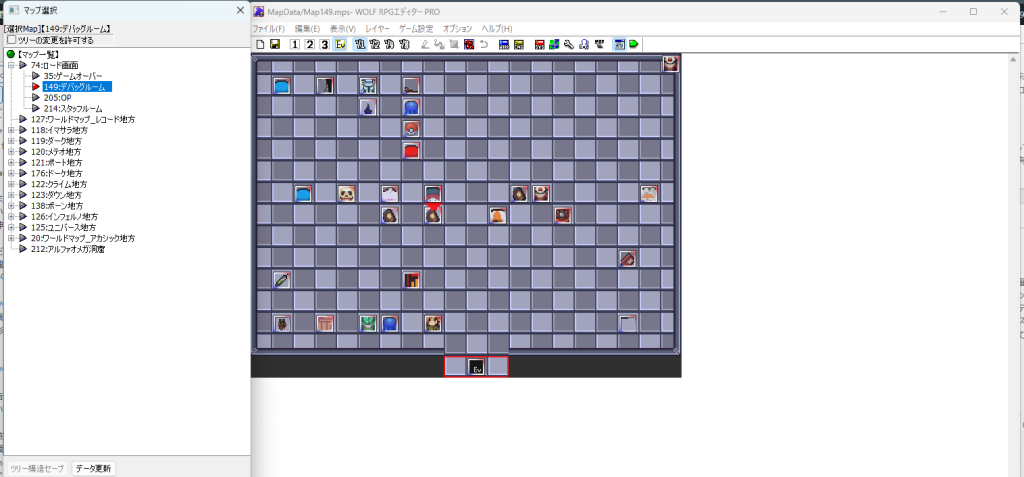 マップ量もかなり多くなってきてしんどかった、途中からデバッグがしぬほど大変なのに気付いてデバッグルームを作った。